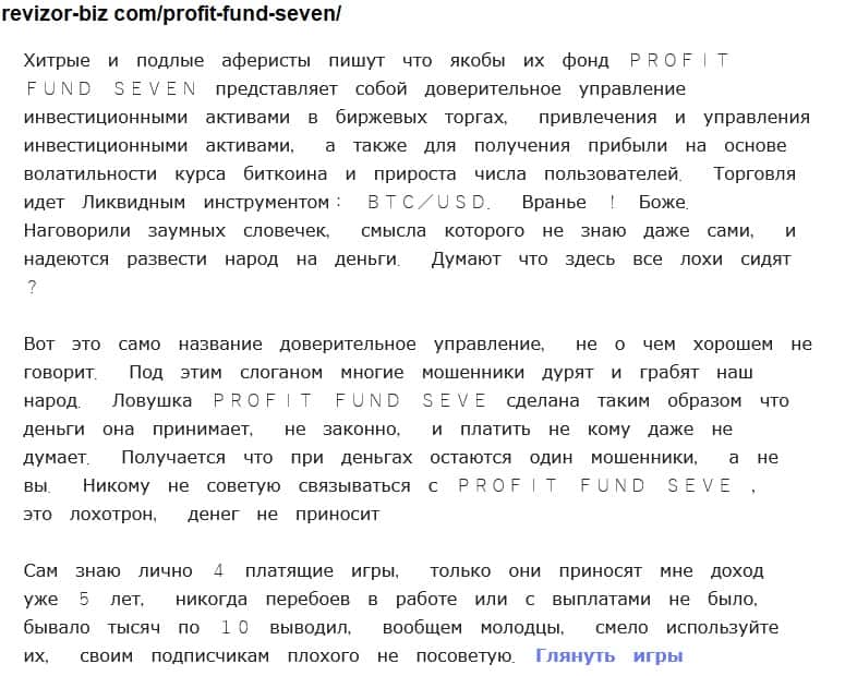 revizor-biz com - сайт, где есть много отзывов о PROFIT FUND SEVEN