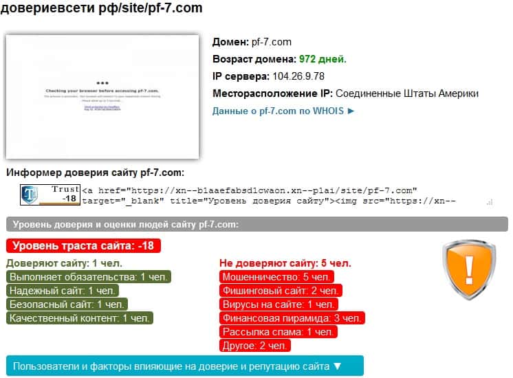 - Сайт конторы ПФ-7 входит во многие черные списки хайп-проектов