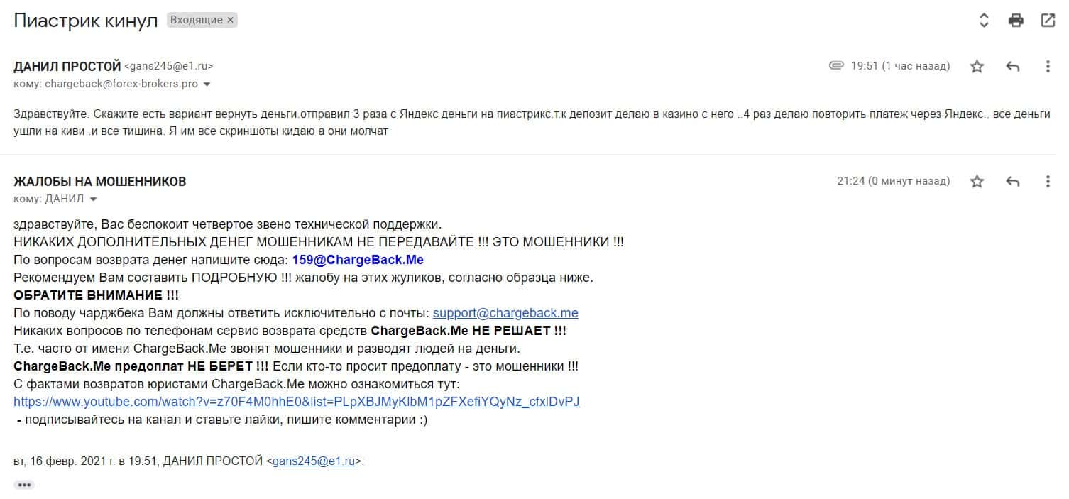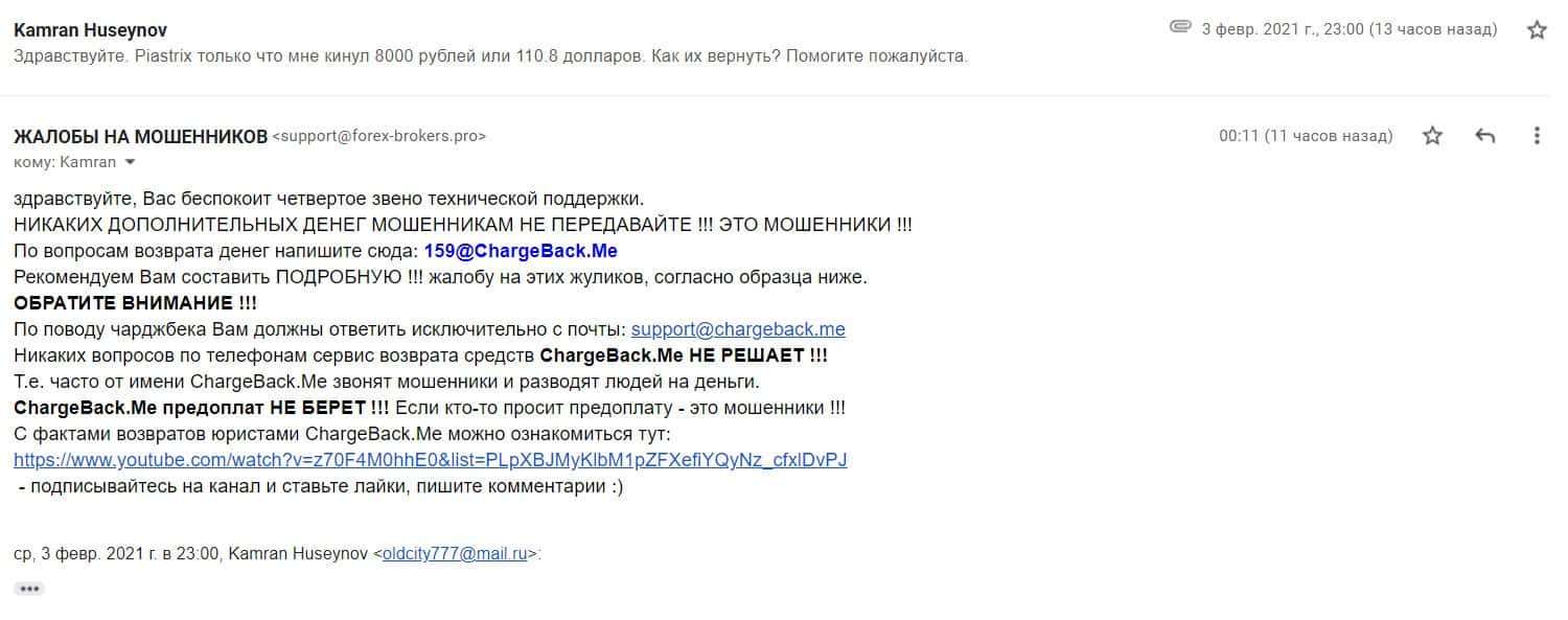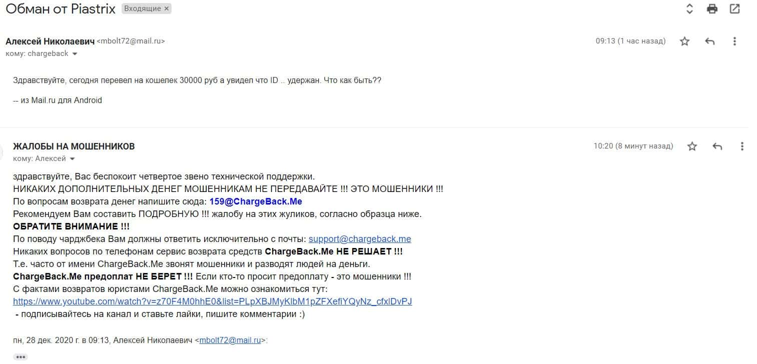 Ниже вы можете увидеть продолжение полной жалобы в сторону лохотрона Piastrix, который опрокинул пользователя на довольно крупную сумму денег, которую шулера Пиастрикс возвращать не собираются.