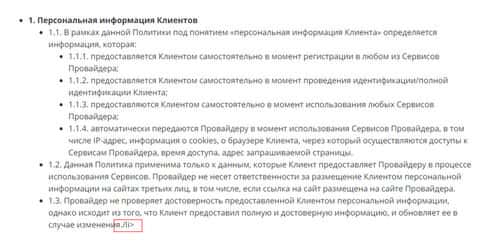 Далее в политике аферистов Пиастрикс идет стандартная вода о том, что мошенники Piastrix собирают личную и персональную информацию своих пользователей под довольно стандартным предлогом верификации. Так же именно здесь можно наглядно увидеть очередную халтуру при создании сайта мошенниками Пиастрикс, которую вы можете так же увидеть на изображении ниже.