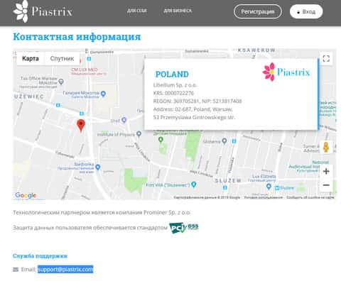 Под свои контакты лохотрон Piastrix отвел отдельный раздел своего подвального сайта, в котором указали довольно мало контактов, что определенно говорит о нежелании аферистов Пиастрикс лишний раз связываться со своей клиентурой, или же попросту тратить деньги на обслуживание контактов. Итак ниже перечислим указанные лохотроном Piastrix контакты для связи: