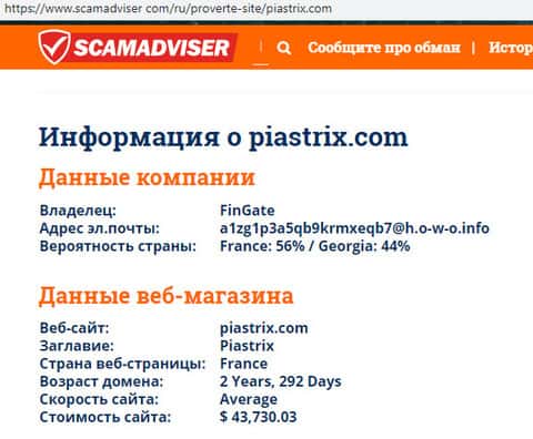 В связи с мошеннической и противозаконной деятельностью аферистов Piastrix их реальные руководители предпочитают анонимность дабы избежать ответственности со стороны правоохранительных органов. Информацию о самом же сайте мошенников Пиастрикс можно узнать с помощью портала портала scamadviser com, который вы можете увидеть на изображении, расположенном ниже.