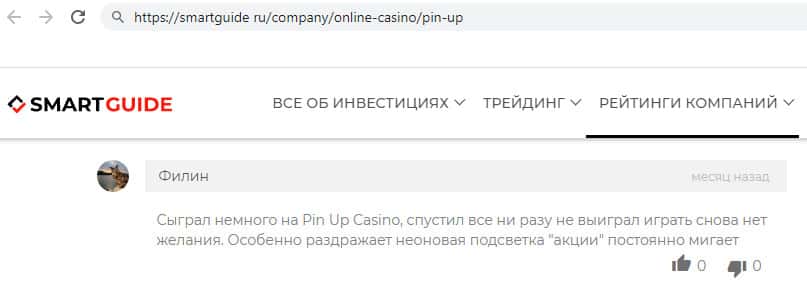 - Мнение интернет - пользователей о конторе кидал Пин Ап Казино