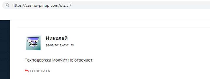 Данный пользователь написал отзыв о фирме разводил Pin-Up Casino, в котором сказал, что поддержка компании намеренно молчит и игнорирует своих клиентов.