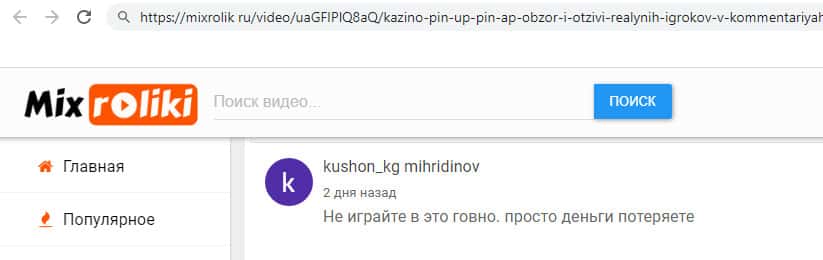mixrolik ru - сайт с отзывами о финансовых разводилах Pin-Up Casino