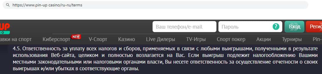 Так же мошенники Pin-Up Casino указали, что все налоги и прочие сборы ложатся на плечи клиентов, то есть фирма будет взимать дополнительные комиссии с клиентов.