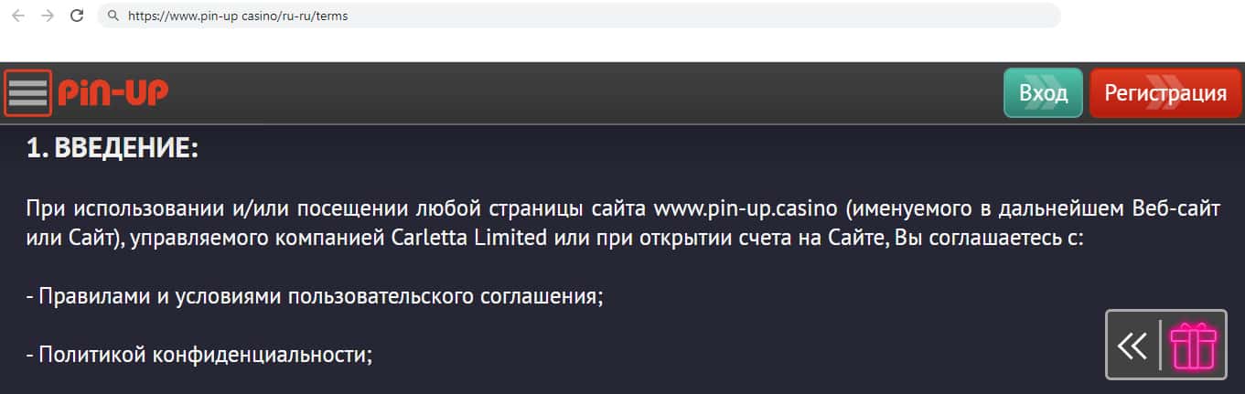 Клиентское соглашение фирмы финансовых аферистов Pin-Up Casino