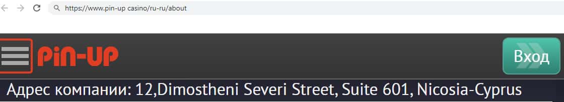 Так же на своём сайте компания лохотронщиков Pin-Up Casino указала адрес своего офиса, который находится на Кипре, куда клиенты не смогут добраться. Адрес фирмы аферистов: