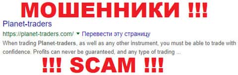 Планет Трейдерс - очередные шулера в сети интернет, которые освоили ячейку мошенников, специализирующихся на CFD контрактах на разницу. В своих жульнических схемах аферисты Planet Traders активно используют самостоятельные изменения котировок, доверительное управление и менеджеров-аферистов. Все эти схемы лишат любого клиента жуликов Планет Трейдерс всех его денег, внесенных в данную помойку. В случае попытки вывода средств с аккаунта шулера Planet Traders блокируют счет клиента и уходят на попятную, вплоть до блокировки аккаунта. Лохотрон Планет Трейдерс пока не особо засветился на форекс форумах, но связываться с шулерами Planet Traders мы вам не советуем !!!