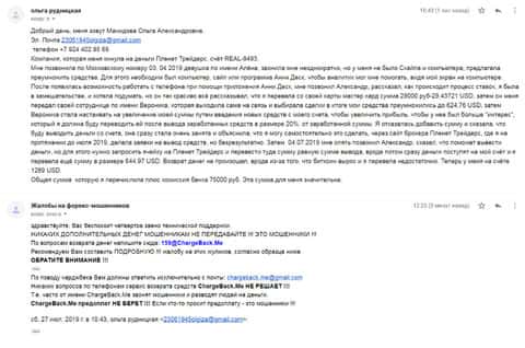 - Еще один развод на деньги в ПЛАНЕТ Трейдер - клиентка пишет об утрате 13000 рублей