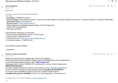 - Детальная жалоба на мошенников Planet Traders - клиент потерял 17000 долларов