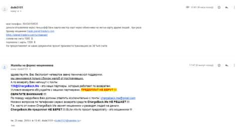 Женщина поведала свою историю как она связалась с кухней Трейд Фред и в общей сложности потеряла порядка 33500 рублей. Теперь просит помощи вернуть средства и обратилась в веб-сервис ChargeBack.Me где пообещали взяться за это дело. Обидно, что помимо своего первого депозита в 250 долларов, она на этом не остановилась и продолжила вестись на уловки лохотронщиков.