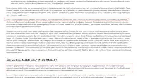 Политика конфиденциальности у шулеров Планет Трейдерс, подобно условиям использования, представляет из себя жиденькую информацию о том, что шулера Planet Traders в праве собирать личную информацию о своих клиентах. Данную информацию жулики Планет Трейдерс могут взять как с открытых источников, так и в обязательном порядке запросить ее лично у вас. Вправе жулики Planet Traders к сбору и хранению информации об вашем местоположении, конфигурации пк и тп. Политику конфиденциальности аферистов Планет Трейдерс вы можете увидеть на изображении ниже.