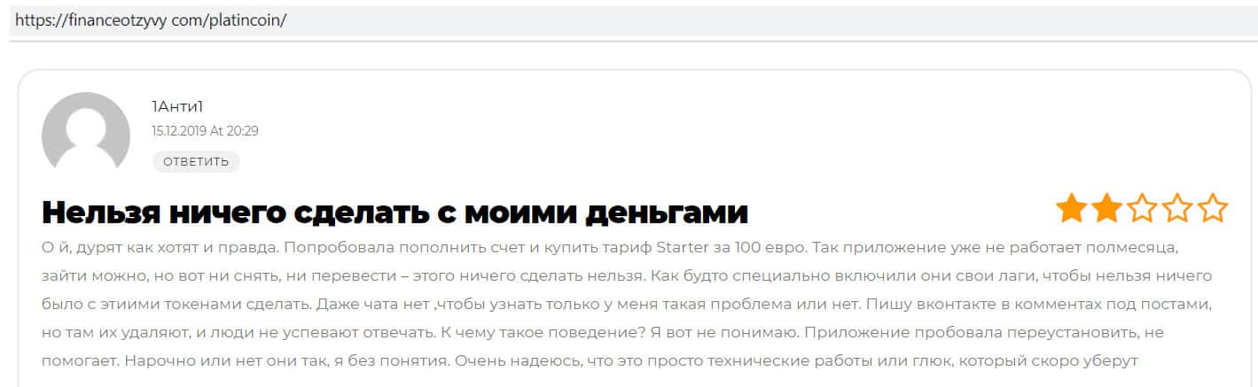 Мошенники из Платин Коин пишут жалобы на данную статью