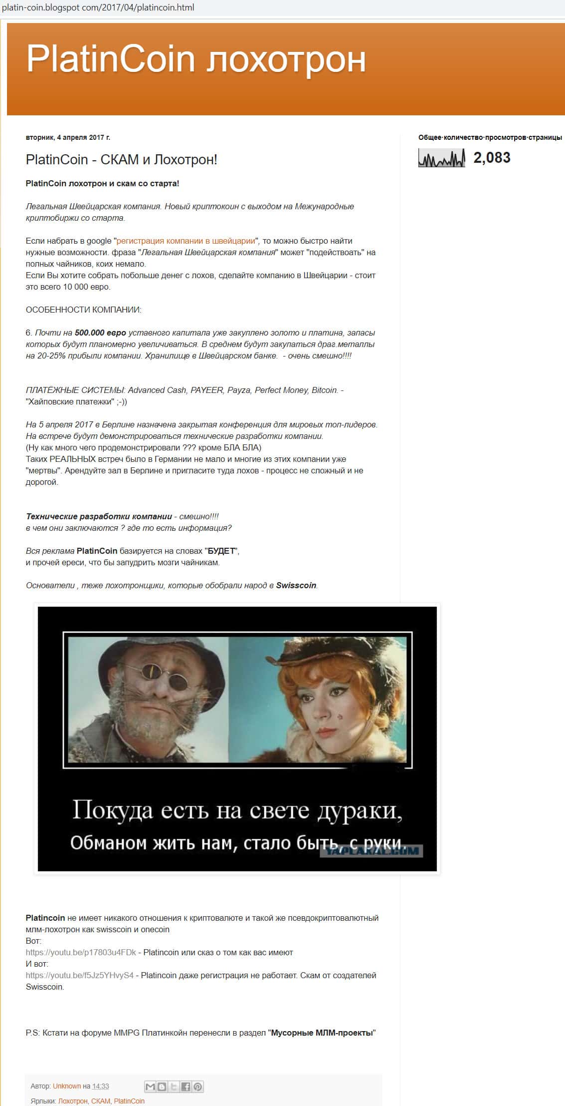 - Мошенники из Платин Коин пишут жалобы на данную статью