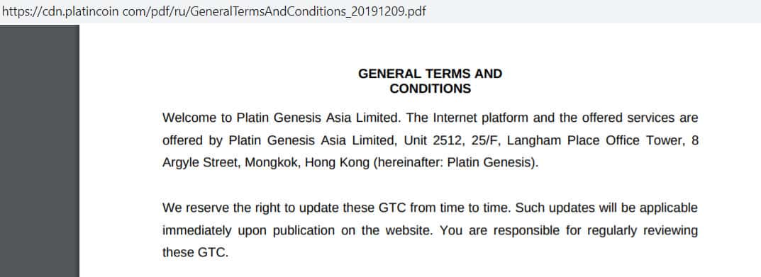 Стандартное для лохотрона пользовательское соглашение от аферистов Платин Коин