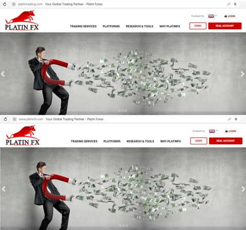 Платин Трейдинг и Платин ФХ – это одни и те же мошенники, с абсолютно идентичными Интернет-ресурсами с разницей лишь в названии домена. Редирект на сам веб-ресурс PlatinFX происходит при смене языка на сайте Platin Trading. Это одни и те же ушлые мошенники! Сотрудничество с обеими приведёт лишь к потере всех вложенных средств. Будьте бдительны.