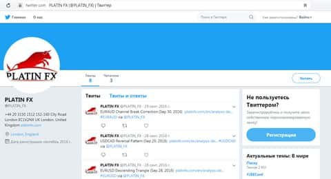 - Мошенники Platin Trading имеют аккаунты в социальных сетях