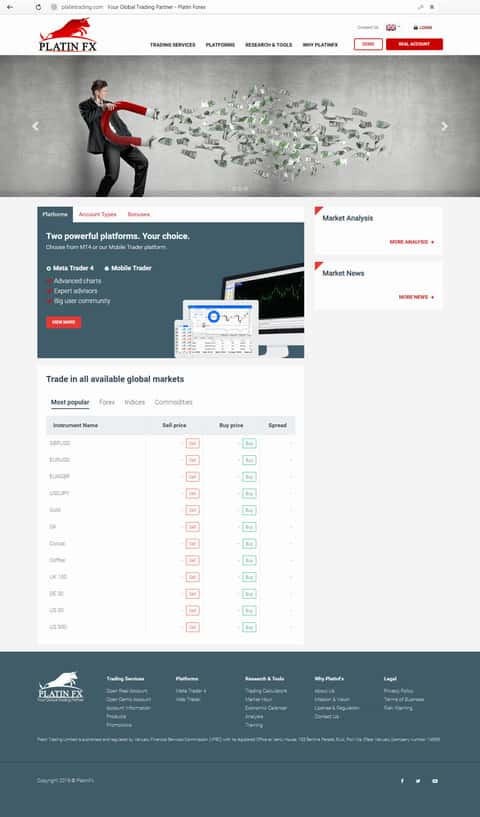 - Веб-сайт конторы аферистов Платин Трейдинг