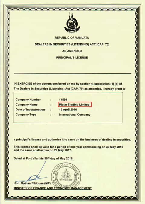 Единственный документа на сайте Platin Trading – липа. Кроме этого, сам договор ссылается на несуществующую оффшор-компанию, что делает его максимально бесполезным для людей, а для мошенников Платин Трейдинг идеальным для снятия с себя ответственности.