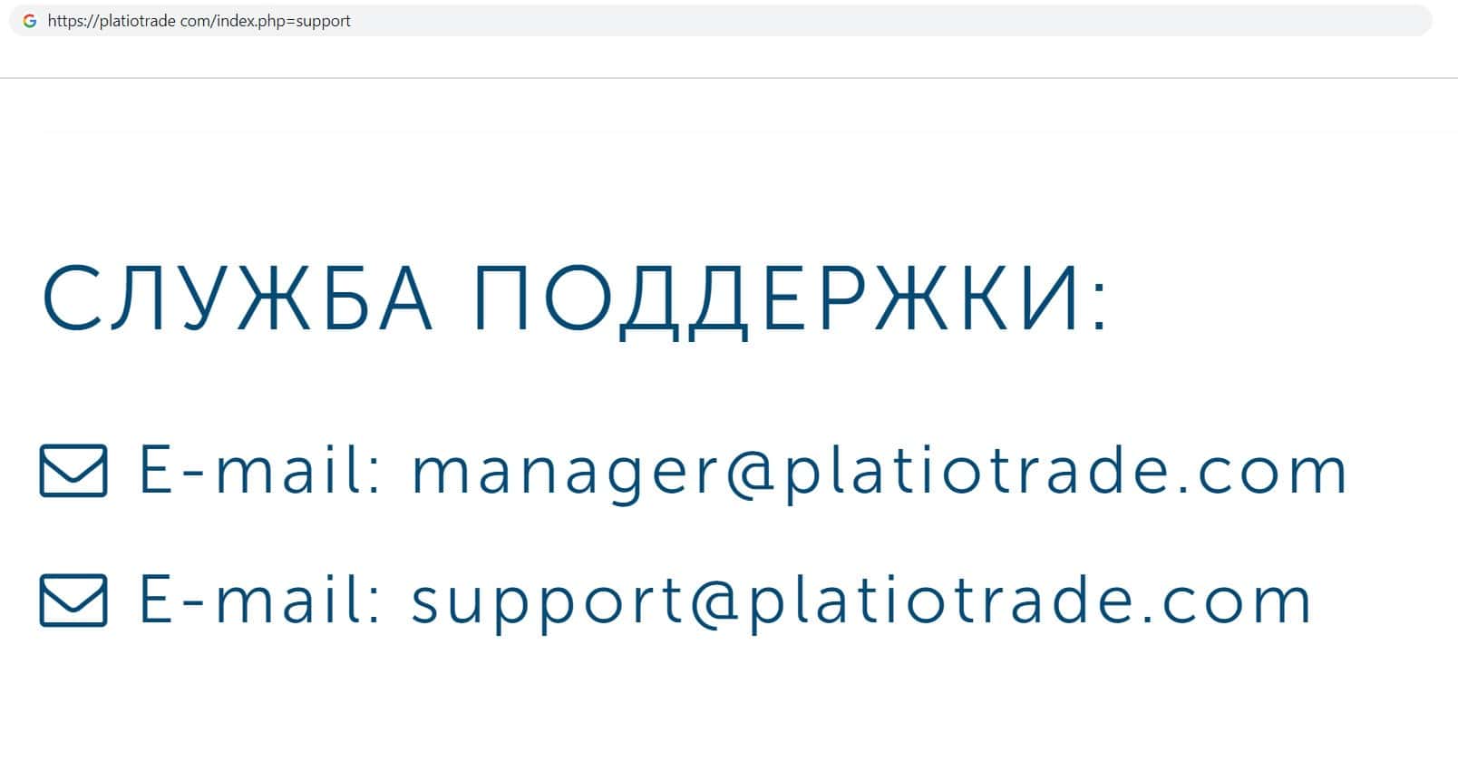 Для того что бы пользователи могли связаться с жуликами Платио Трейд, компания предоставила лишь два почтовых адреса, и никакого номера телефона. Почта мошенников: