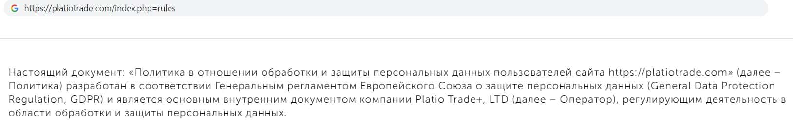 На своём главном интернет ресурсе, компания финансовых кидал Платио Трейд представила своё юридическое лицо, которым является компания Platio Trade+ LTD.