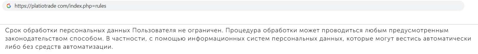 Так же в своём соглашение жулики PlatioTrade указали, что срок проверки документов клиента не ограничен, а значит что при выводе средств фирма может отказать, так как ещё не проверила данные клиента.