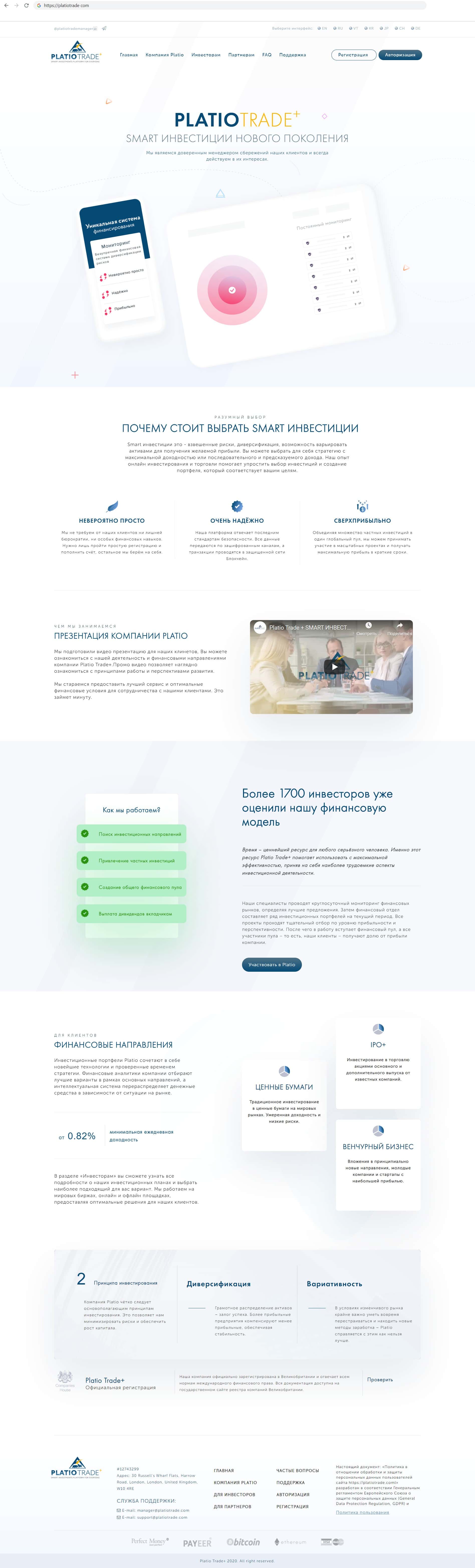 Глядя на сайт кидал Платио Трейд сразу бросается в глаза то, что сайт шаблонный, так как компания сделала его на скорую руку, что бы особо не заморачиваться и скорее начать собирать средства с клиентов.