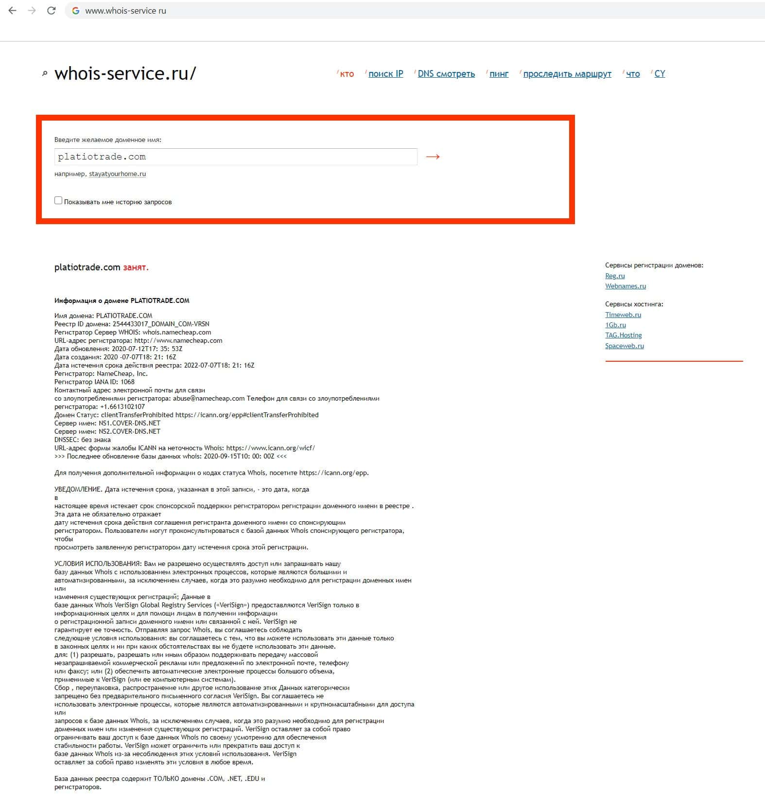 - Кому принадлежит домен лохотрона Платио Трейд?