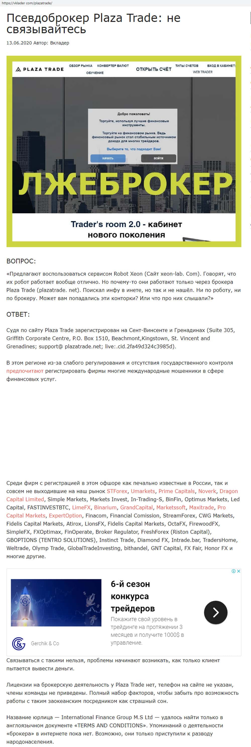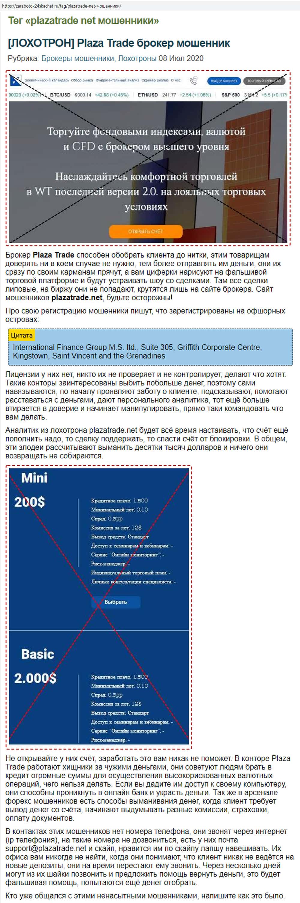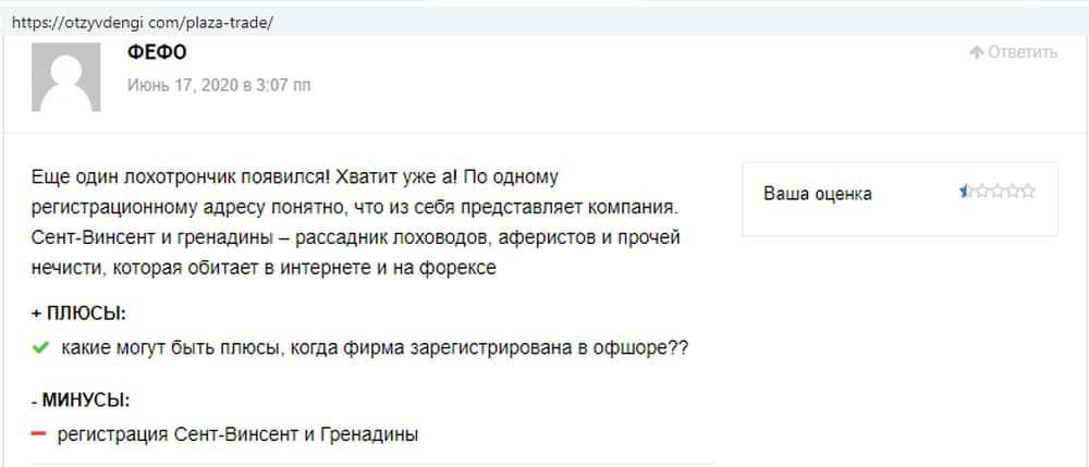 Отзывы трейдеров об оффшорной скам-конторе Плаза Трейд