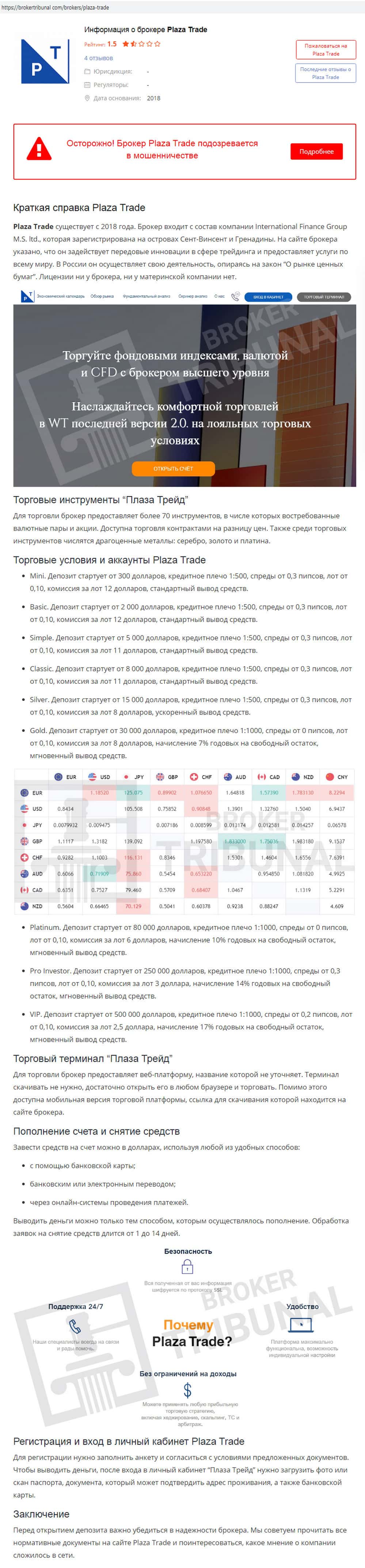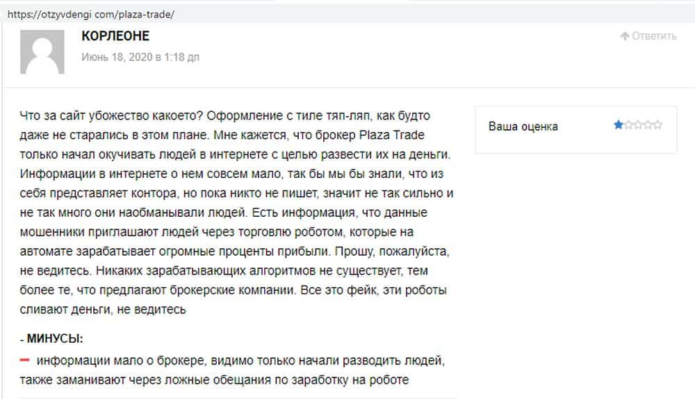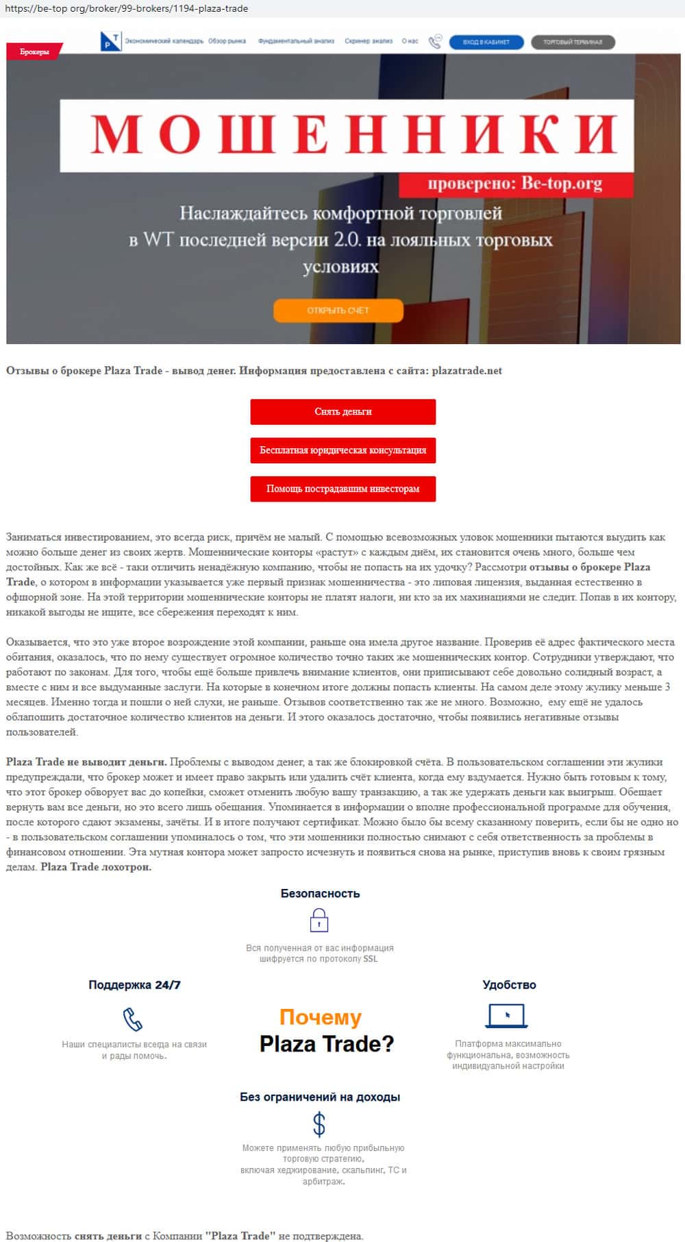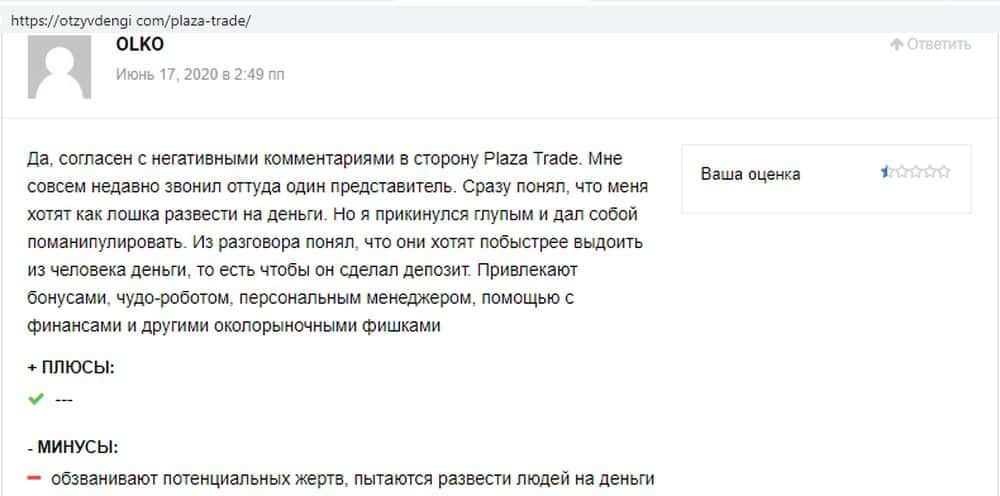Обзоры онлайн-лохотрона Плаза Трейд на разных ресурсах