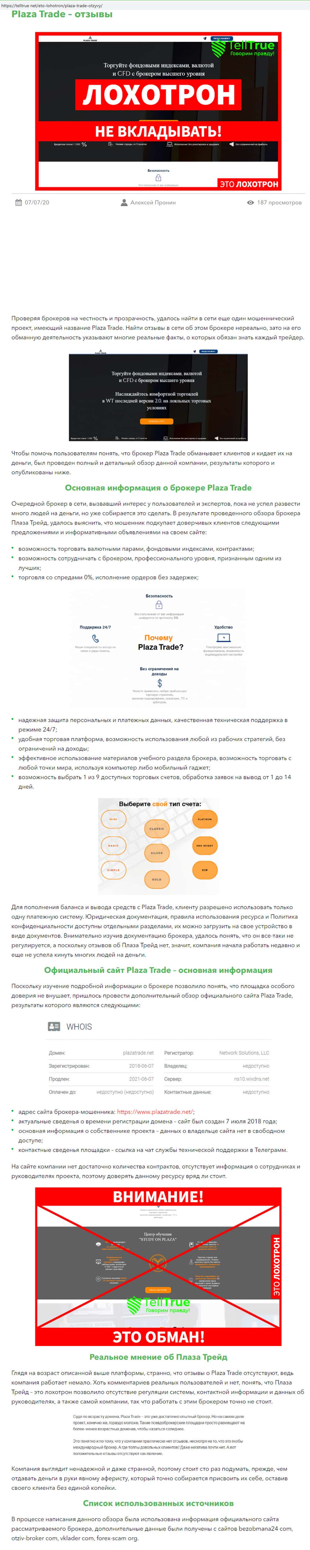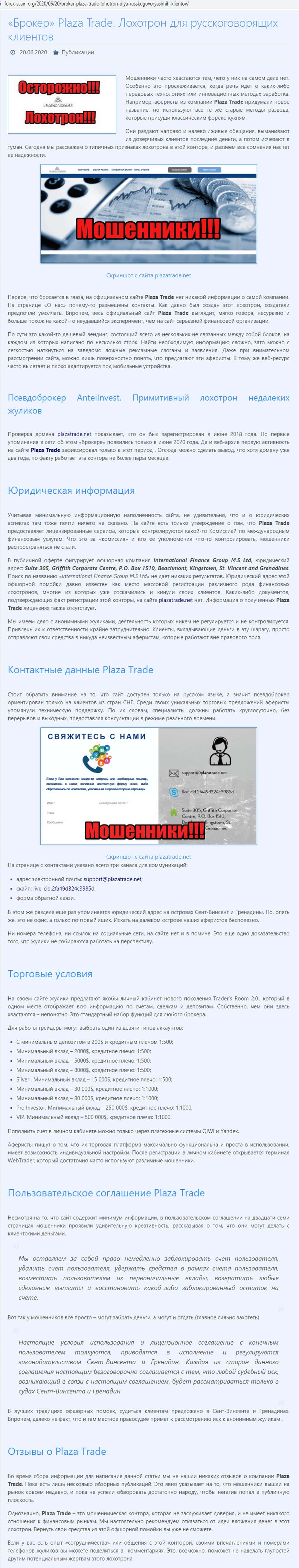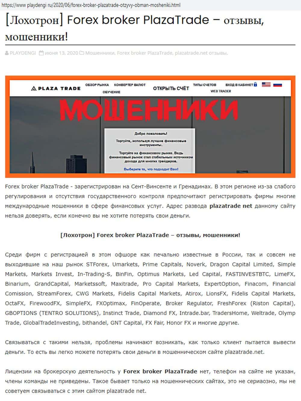 Обзоры онлайн-лохотрона Плаза Трейд на разных ресурсах
