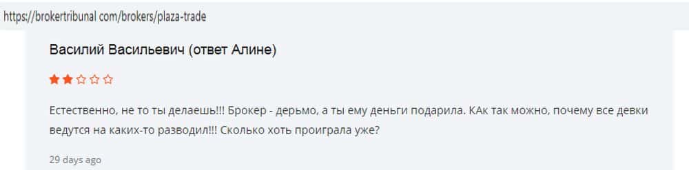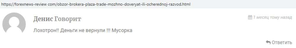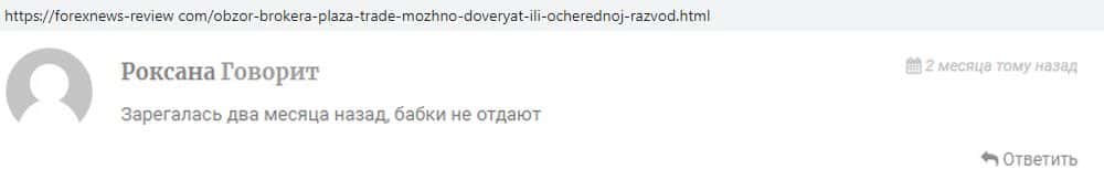 Хотя лохотрон PlazaTrade Net появился недавно, в сети уже есть отзывы от пострадавших, которые рассказывают, что деньги забрать у махинаторов не получилось, не говоря о прибыли.