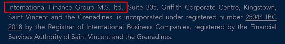 Да и о самой так называемой International Finance Group M.S. ltd нигде нет информации. Это просто придуманное название, которое должно у доверчивых пользователей вызвать доверие.