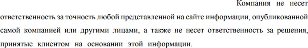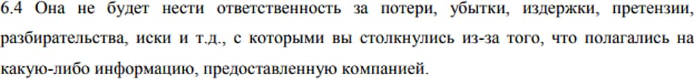 Еще одно положение ущербного договора, которое доказывает, что вся информация, которую трейдер получает чтобы совершать свои сделки, это просто взятые с потолка цифры.
