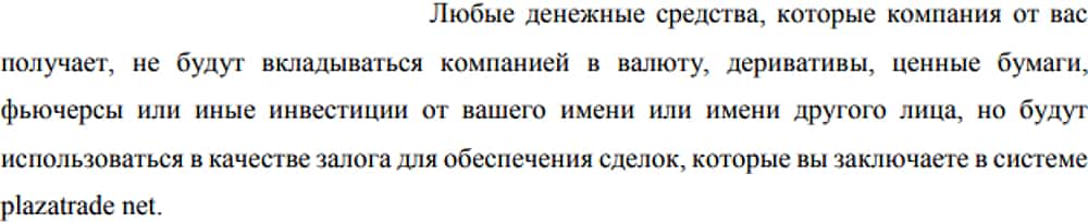 - Клиентское недосоглашение отпетых мошенников PlazaTrade Net