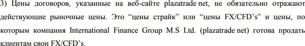 В одном из пунктов своего деревянного договора мошенники Плаза Трейд признали, что они кухня, поскольку цены и котировки, которые подаются трейдеру, не совпадают с реальными.