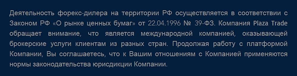 Сомнительная конторка Плаза Трейд, которая себя называет брокером, на самом деле им не является. В этом внебиржевые обманщики сами сознаются в одном из пунктов лжедоговора.
