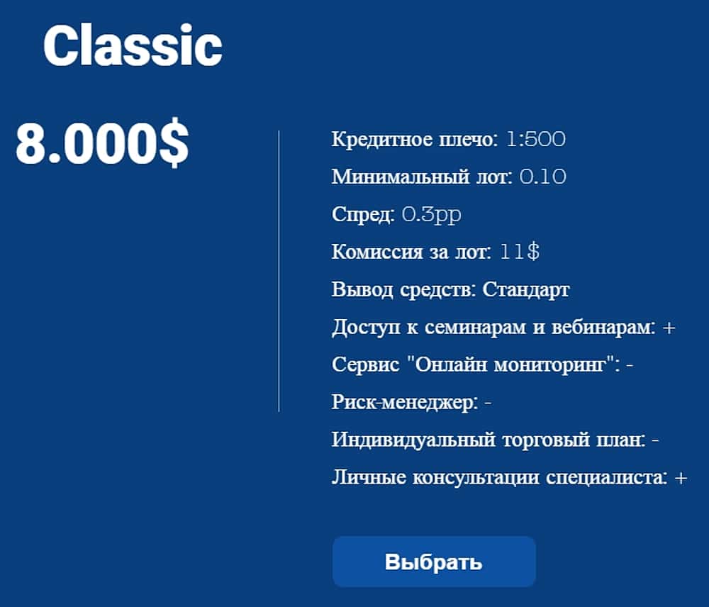 Со счета Classic уже подключается специалист-разводила, поскольку данная сумма депозита уже интересует мошенников Плаза Трейд. Более разницы с предыдущим счетом нет.