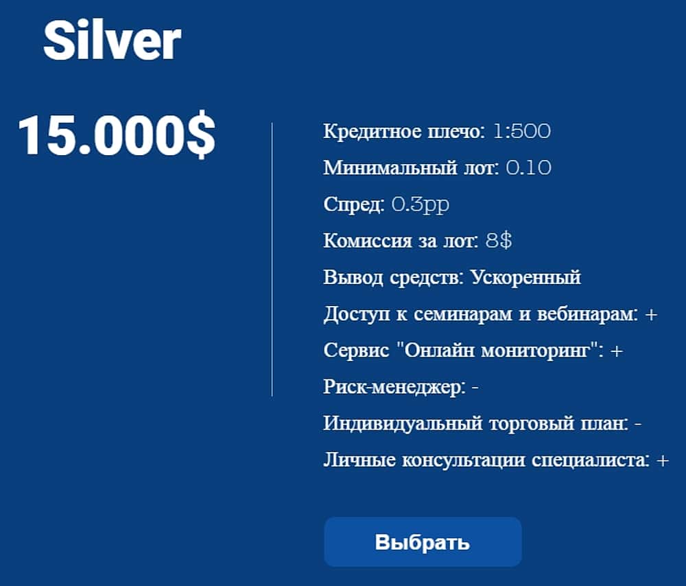 Счет Silver отличается от всех перед этим описанных подключением некой непонятной услуги Онлайн-Мониторинг и пониженной комиссией, хотя она если честно просто громадная.