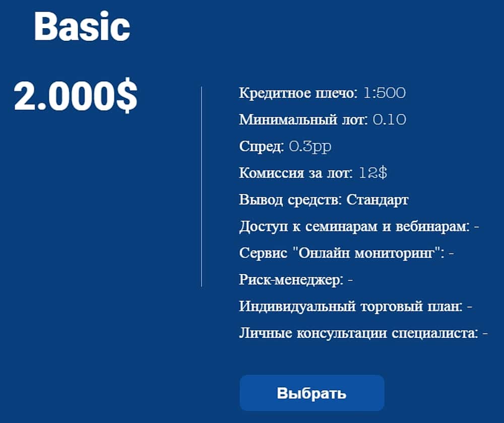 Счет Basic - тоже разводняк. Во-первых, торговля на рынке Форекс начинается с 100000$ за 1 лот. Здесь предлагают минимальный лот в 0,1. Это явная песочница без выхода на Forex.