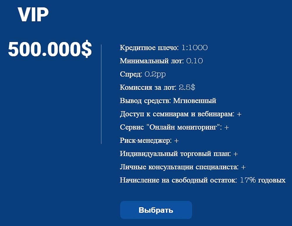 Счет VIP видимо создан для красоты. Ни один здравомыслящий трейдер не засунет в кучу форекс-гнилья Плаза Трейд полмиллиона долларов, особенно за разводные 17% годовых.