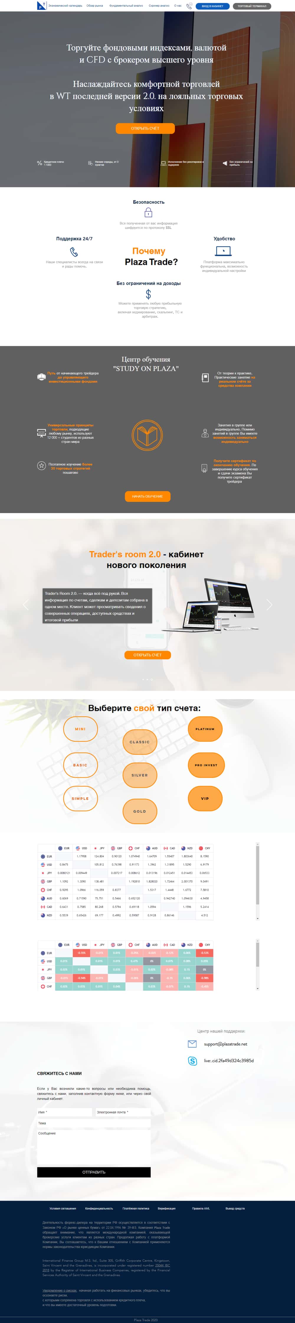 Мошенники Плаза Трейд пытаются строить из себя солидную международную контору. Но получается это плохо - даже сайт выдает кидал, так как это дешевый криво склепанный лендинг.
