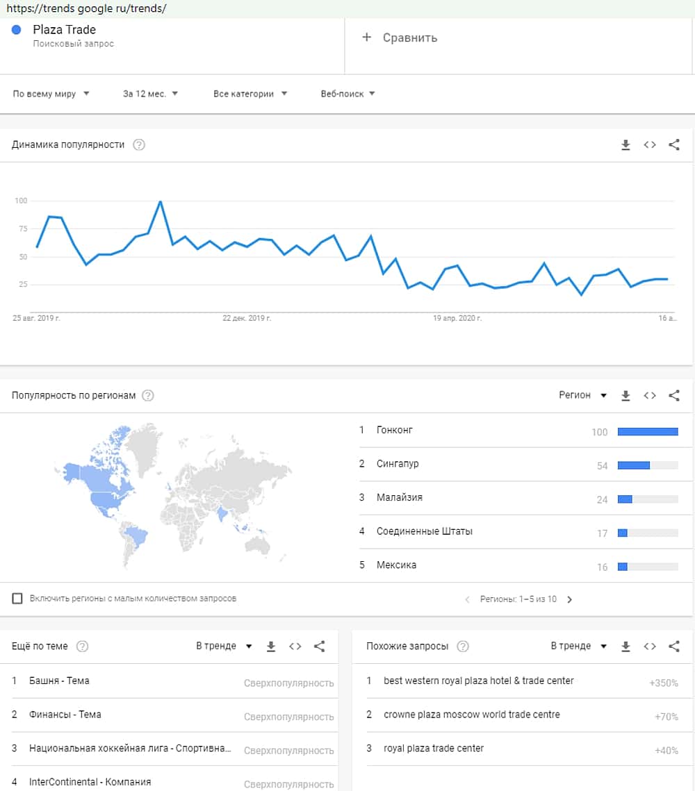 Если проверить запрос "Plaza Trade" по миру, получаем, что им интересуются. Но кидал Плаза Трейд это не касается - ищут настоящие международные компании с похожим названием.