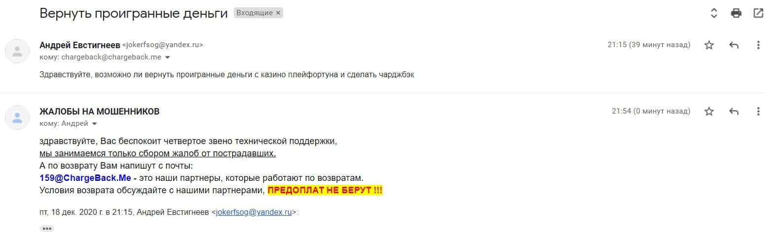 Насчет возможностей вернуть свои деньги от МОШЕННИКОВ Плэй Фортуна - пишите письмо на почту: [email protected]