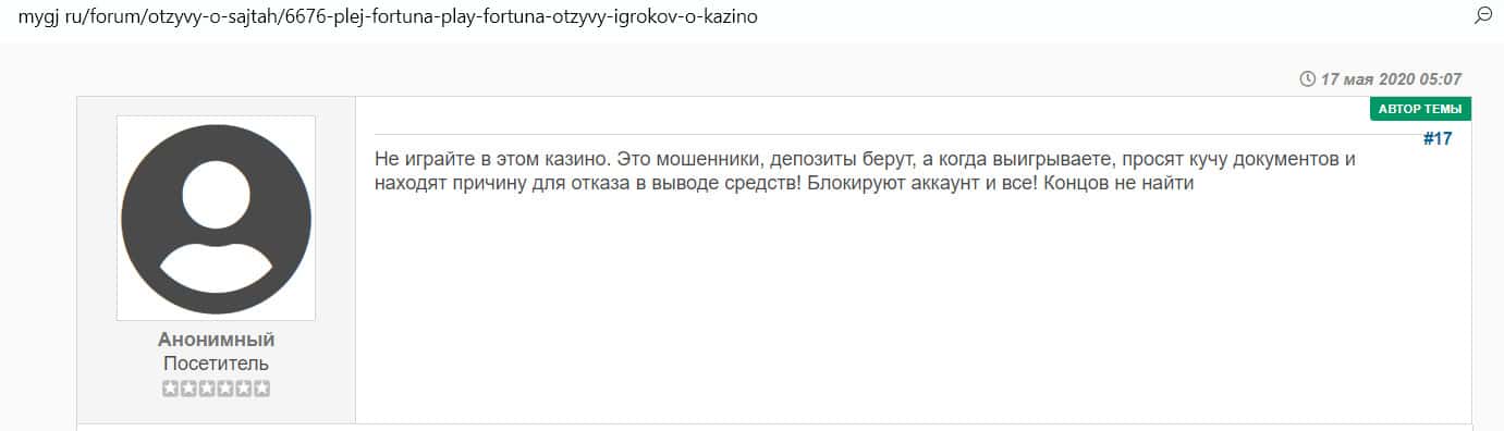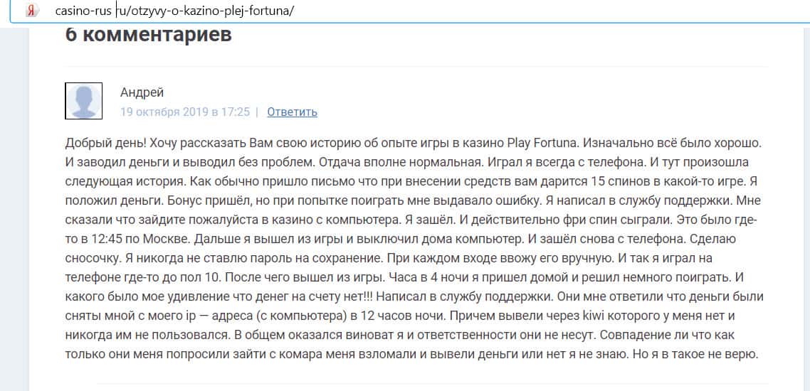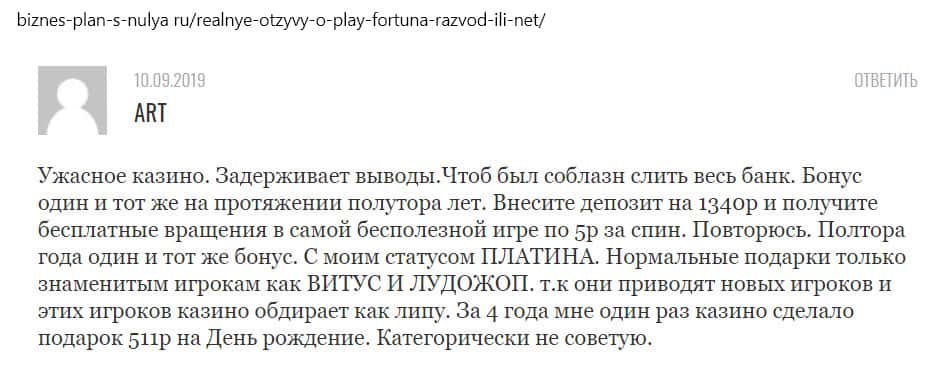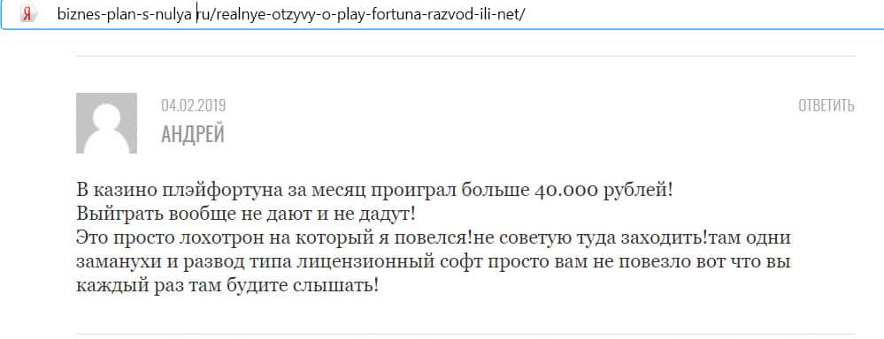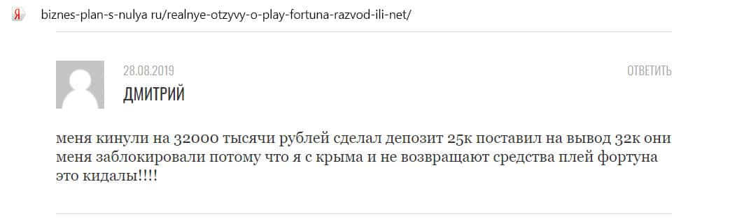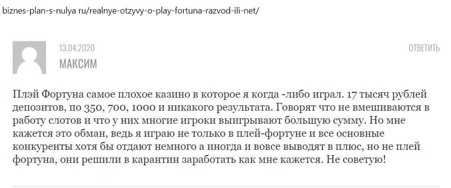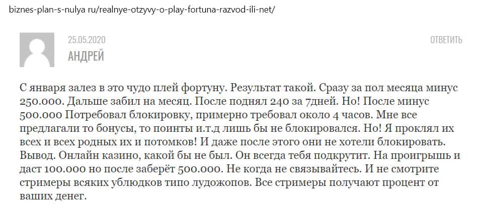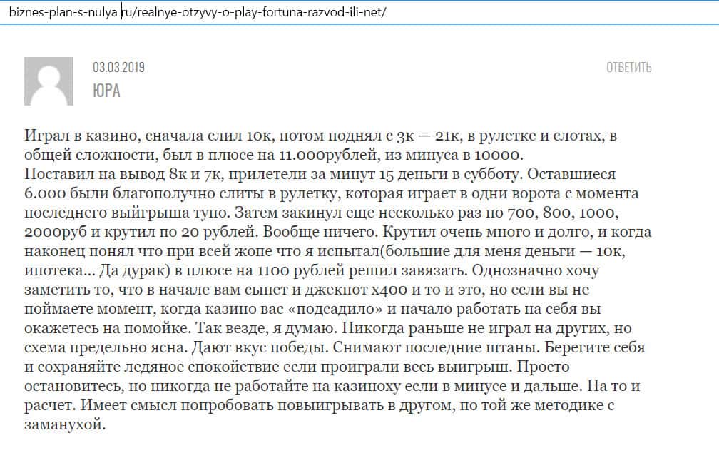 Отзывы обманутых клиентов о казино Плэй Фортуна
