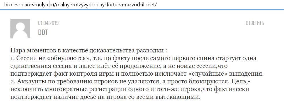 - Обзоры, разоблачающие деятельность конторы Плэй Фортуна