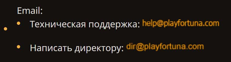 Можно связаться с компанией Casino Faraon и другим способом: по электронной почте, написав директору или в техподдержку.