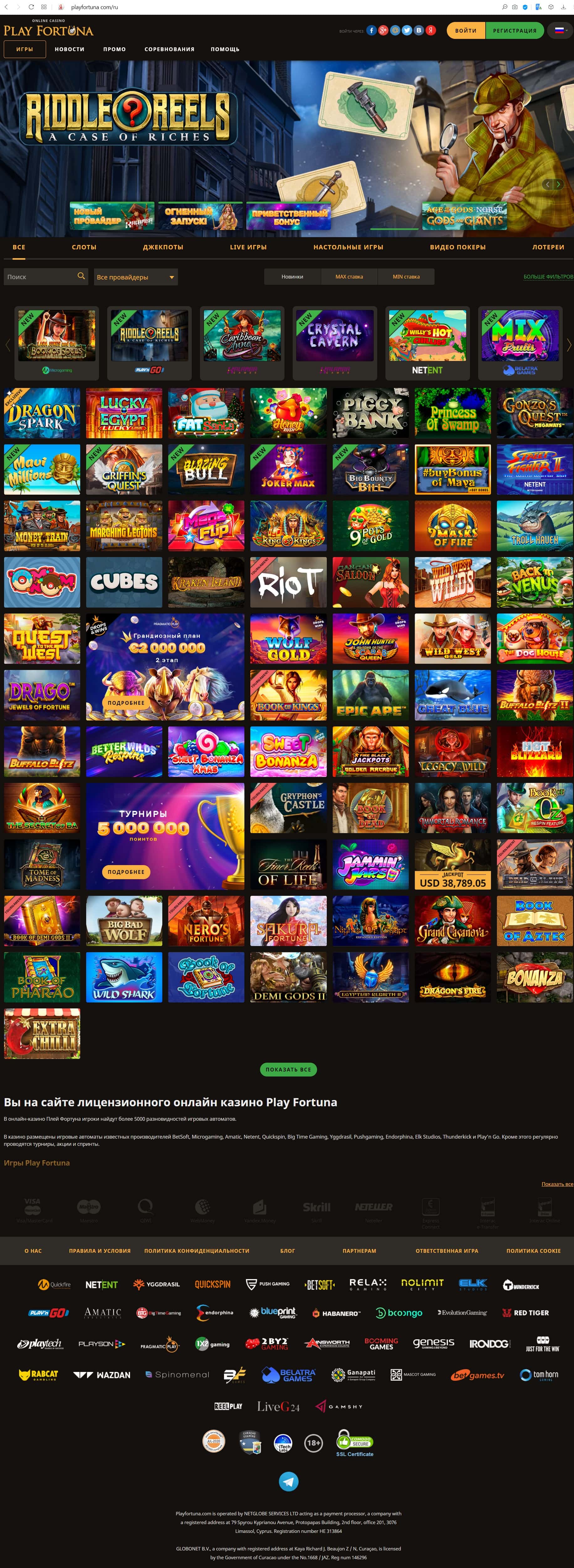 Как выглядит главная страница он-лайн казино Плэй Фортуна?