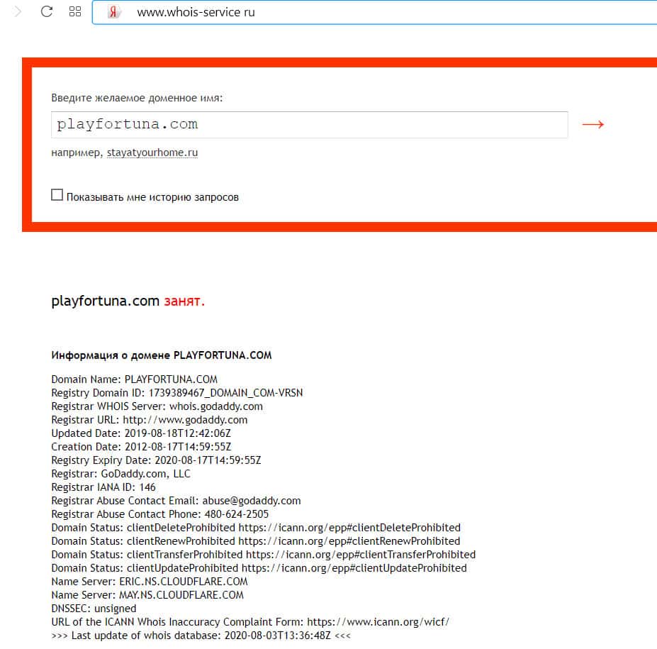 - Кому принадлежит доменное имя сайта playfortuna com?
